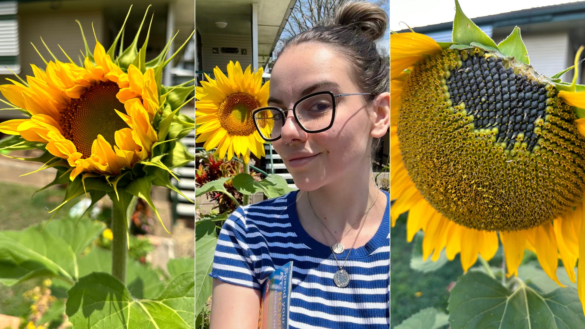 That one sunflower gave me enough seeds that held the potential for 40 more sunflowers — which could each give me the seeds for 40 more sunflowers — theoretically, if I was to plant all the seeds from that one sunflower, and then all the seeds from the sunflowers they produced, in just three plantings that would equate to 64,000 sunflowers. All from that one sunflower.